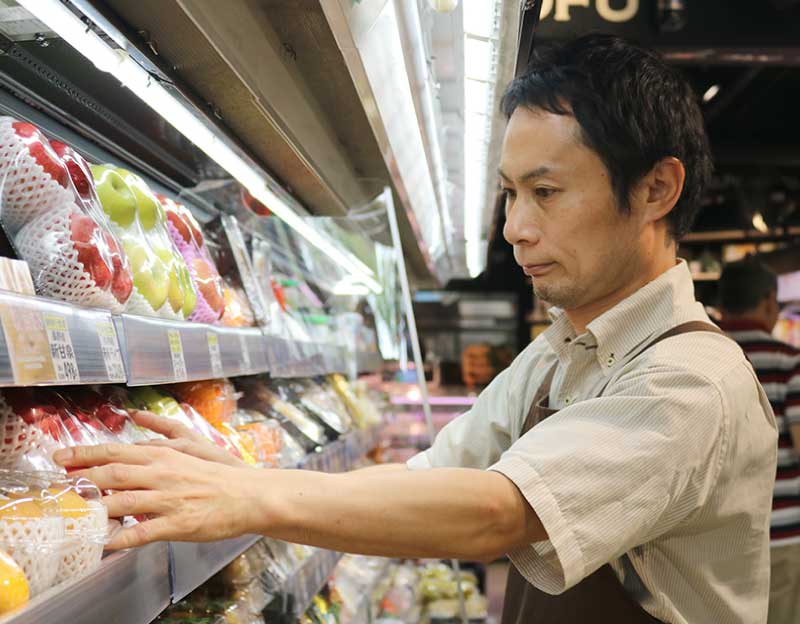 早朝から市場に野菜や果物などの買付けに行っています。セリで落とした商品が店頭に並ぶので、見た目だけでなく新鮮で美味しいものを、いかに価格を抑えて仕入れるかが重要です。セリや仕入れの目利きは、経験だけでなくセンスも必要になります。このセンスとは、純粋に食べることが好きであること、そしてお客様目線に立って商品と向き合い、美味しいそうだと感じられるかどうかです。その感性が、良い商品との出会いに繋がります。